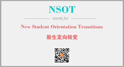 英文缩略词“NSOT”经常作为“New Student Orientation Transitions”的英文缩写来使用,中文表示:“新生定向转变”。本文将详细介绍英文缩写词NSOT所代表英文单词,其对应的中文拼音、详细解释以及在英语中的流行度。此外,还有关于缩略词NSOT的分类、应用领域及相关应用示例等。