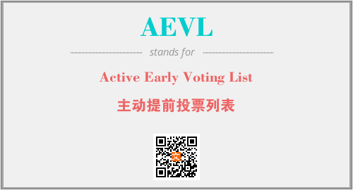上述内容是“Active Early Voting List”作为“AEVL”的缩写,解释为“主动提前投票列表”时的信息,以及英文缩略词AEVL所代表的英文单词,其对应的中文拼音、详细解释以及在英文中的流行度和相关分类、应用领域及应用示例等。