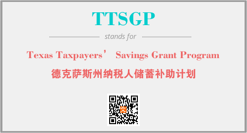 上述内容是“Texas Taxpayers’ Savings Grant Program”作为“TTSGP”的缩写,解释为“德克萨斯州纳税人储蓄补助计划”时的信息,以及英文缩略词TTSGP所代表的英文单词,其对应的中文拼音、详细解释以及在英文中的流行度和相关分类、应用领域及应用示例等。