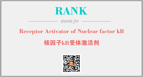 上述内容是“Receptor Activator of Nuclear factor kB”作为“RANK”的缩写,解释为“核因子kB受体激活剂”时的信息,以及英文缩略词RANK所代表的英文单词,其对应的中文拼音、详细解释以及在英文中的流行度和相关分类、应用领域及应用示例等。