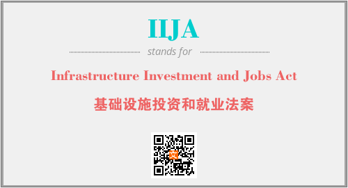 上述内容是“Infrastructure Investment and Jobs Act”作为“IIJA”的缩写,解释为“基础设施投资和就业法案”时的信息,以及英文缩略词IIJA所代表的英文单词,其对应的中文拼音、详细解释以及在英文中的流行度和相关分类、应用领域及应用示例等。