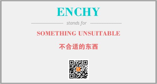 英文缩略词“ENCHY”经常作为“SOMETHING UNSUITABLE”的英文缩写来使用,中文表示:“不合适的东西”。本文将详细介绍英文缩写词ENCHY所代表英文单词,其对应的中文拼音、详细解释以及在英语中的流行度。此外,还有关于缩略词ENCHY的分类、应用领域及相关应用示例等。