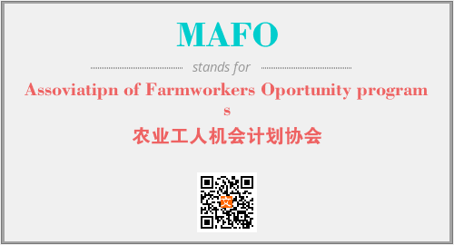 以上为Assoviatipn of Farmworkers Oportunity programs英文缩略词MAFO的中文解释,以及该英文缩写在英语的流行度、分类和应用领域方面的信息。