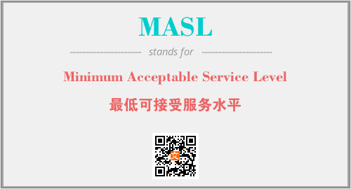 上述内容是“Minimum Acceptable Service Level”作为“MASL”的缩写,解释为“最低可接受服务水平”时的信息,以及英文缩略词MASL所代表的英文单词,其对应的中文拼音、详细解释以及在英文中的流行度和相关分类、应用领域及应用示例等。