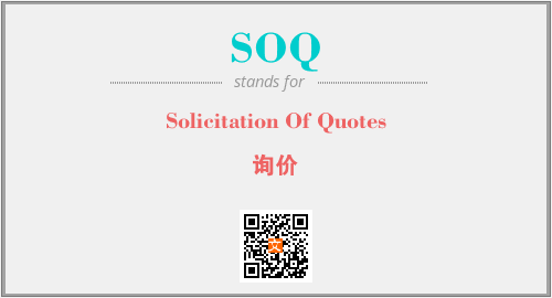 以上为Solicitation Of Quotes英文缩略词SOQ的中文解释,以及该英文缩写在英语的流行度、分类和应用领域方面的信息。