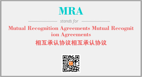 以上为Mutual Recognition Agreements Mutual Recognition Agreements英文缩略词MRA的中文解释,以及该英文缩写在英语的流行度、分类和应用领域方面的信息。