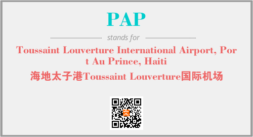 以上为Toussaint Louverture International Airport, Port Au Prince, Haiti英文缩略词PAP的中文解释,以及该英文缩写在英语的流行度、分类和应用领域方面的信息。