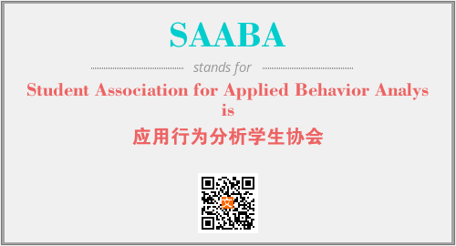 英文缩略词“SAABA”经常作为“Student Association for Applied Behavior Analysis”的英文缩写来使用,中文表示:“应用行为分析学生协会”。本文将详细介绍英文缩写词SAABA所代表英文单词,其对应的中文拼音、详细解释以及在英语中的流行度。此外,还有关于缩略词SAABA的分类、应用领域及相关应用示例等。