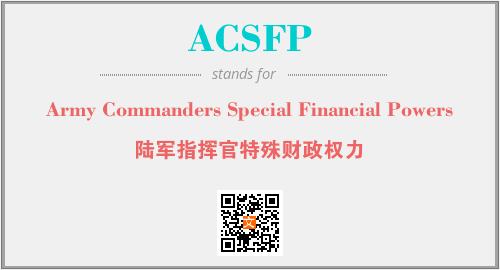 上述内容是“Army Commanders Special Financial Powers”作为“ACSFP”的缩写,解释为“陆军指挥官特殊财政权力”时的信息,以及英文缩略词ACSFP所代表的英文单词,其对应的中文拼音、详细解释以及在英文中的流行度和相关分类、应用领域及应用示例等。