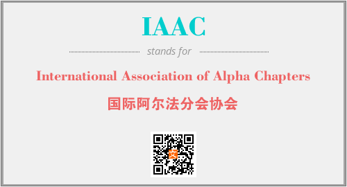 英文缩略词“IAAC”经常作为“International Association of Alpha Chapters”的英文缩写来使用,中文表示:“国际阿尔法分会协会”。本文将详细介绍英文缩写词IAAC所代表英文单词,其对应的中文拼音、详细解释以及在英语中的流行度。此外,还有关于缩略词IAAC的分类、应用领域及相关应用示例等。