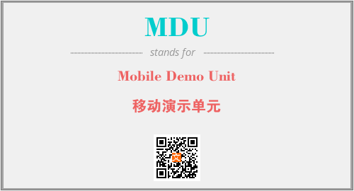 英文缩略词“MDU”经常作为“Mobile Demo Unit”的英文缩写来使用,中文表示:“移动演示单元”。本文将详细介绍英文缩写词MDU所代表英文单词,其对应的中文拼音、详细解释以及在英语中的流行度。此外,还有关于缩略词MDU的分类、应用领域及相关应用示例等。