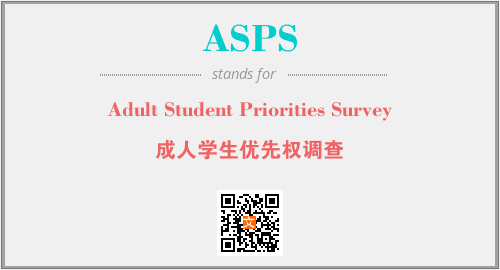 英文缩略词“ASPS”经常作为“Adult Student Priorities Survey”的英文缩写来使用,中文表示:“成人学生优先权调查”。本文将详细介绍英文缩写词ASPS所代表英文单词,其对应的中文拼音、详细解释以及在英语中的流行度。此外,还有关于缩略词ASPS的分类、应用领域及相关应用示例等。