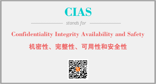 上述内容是“Confidentiality Integrity Availability and Safety”作为“CIAS”的缩写,解释为“机密性、完整性、可用性和安全性”时的信息,以及英文缩略词CIAS所代表的英文单词,其对应的中文拼音、详细解释以及在英文中的流行度和相关分类、应用领域及应用示例等。