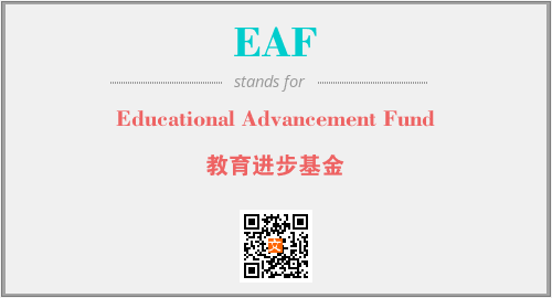 上述内容是“Educational Advancement Fund”作为“EAF”的缩写,解释为“教育进步基金”时的信息,以及英文缩略词EAF所代表的英文单词,其对应的中文拼音、详细解释以及在英文中的流行度和相关分类、应用领域及应用示例等。