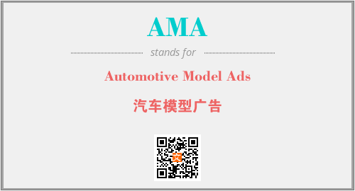 上述内容是“Automotive Model Ads”作为“AMA”的缩写,解释为“汽车模型广告”时的信息,以及英文缩略词AMA所代表的英文单词,其对应的中文拼音、详细解释以及在英文中的流行度和相关分类、应用领域及应用示例等。