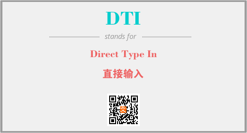 英文缩略词“DTI”经常作为“Direct Type In”的英文缩写来使用,中文表示:“直接输入”。本文将详细介绍英文缩写词DTI所代表英文单词,其对应的中文拼音、详细解释以及在英语中的流行度。此外,还有关于缩略词DTI的分类、应用领域及相关应用示例等。