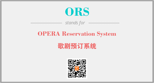 上述内容是“OPERA Reservation System”作为“ORS”的缩写,解释为“歌剧预订系统”时的信息,以及英文缩略词ORS所代表的英文单词,其对应的中文拼音、详细解释以及在英文中的流行度和相关分类、应用领域及应用示例等。