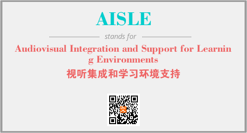 上述内容是“Audiovisual Integration and Support for Learning Environments”作为“AISLE”的缩写,解释为“视听集成和学习环境支持”时的信息,以及英文缩略词AISLE所代表的英文单词,其对应的中文拼音、详细解释以及在英文中的流行度和相关分类、应用领域及应用示例等。