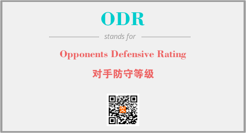 上述内容是“Opponents Defensive Rating”作为“ODR”的缩写,解释为“对手防守等级”时的信息,以及英文缩略词ODR所代表的英文单词,其对应的中文拼音、详细解释以及在英文中的流行度和相关分类、应用领域及应用示例等。