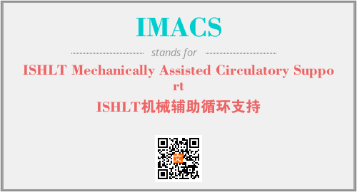 上述内容是“ISHLT Mechanically Assisted Circulatory Support”作为“IMACS”的缩写,解释为“ISHLT机械辅助循环支持”时的信息,以及英文缩略词IMACS所代表的英文单词,其对应的中文拼音、详细解释以及在英文中的流行度和相关分类、应用领域及应用示例等。