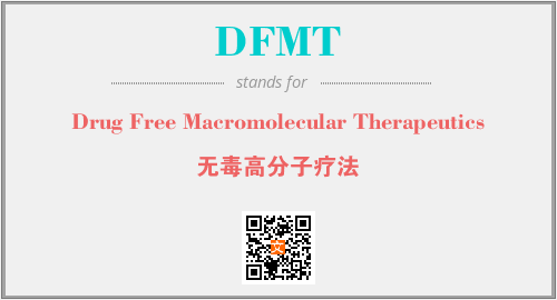 上述内容是“Drug Free Macromolecular Therapeutics”作为“DFMT”的缩写,解释为“无毒高分子疗法”时的信息,以及英文缩略词DFMT所代表的英文单词,其对应的中文拼音、详细解释以及在英文中的流行度和相关分类、应用领域及应用示例等。
