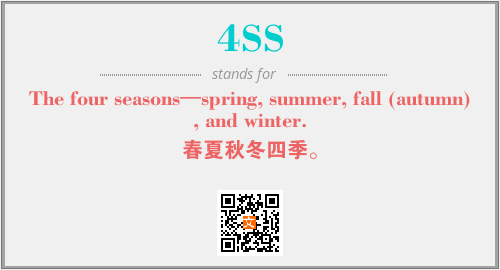 上述内容是“The four seasons—spring, summer, fall (autumn), and winter.”作为“4SS”的缩写,解释为“春夏秋冬四季。”时的信息,以及英文缩略词4SS所代表的英文单词,其对应的中文拼音、详细解释以及在英文中的流行度和相关分类、应用领域及应用示例等。