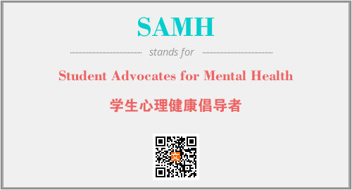 以上为Student Advocates for Mental Health英文缩略词SAMH的中文解释,以及该英文缩写在英语的流行度、分类和应用领域方面的信息。