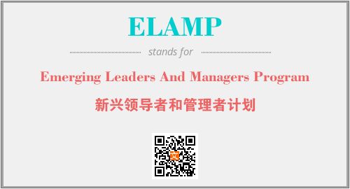 上述内容是“Emerging Leaders And Managers Program”作为“ELAMP”的缩写,解释为“新兴领导者和管理者计划”时的信息,以及英文缩略词ELAMP所代表的英文单词,其对应的中文拼音、详细解释以及在英文中的流行度和相关分类、应用领域及应用示例等。