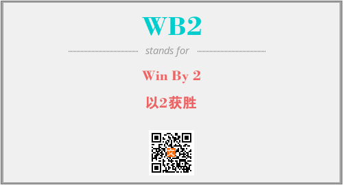 上述内容是“Win By 2”作为“WB2”的缩写,解释为“以2获胜”时的信息,以及英文缩略词WB2所代表的英文单词,其对应的中文拼音、详细解释以及在英文中的流行度和相关分类、应用领域及应用示例等。