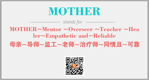 上述内容是“MOTHER~Mentor ~Overseer ~Teacher ~Healer~Empathetic and~Reliable”作为“MOTHER”的缩写,解释为“母亲~导师~监工~老师~治疗师~同情且~可靠”时的信息,以及英文缩略词MOTHER所代表的英文单词,其对应的中文拼音、详细解释以及在英文中的流行度和相关分类、应用领域及应用示例等。