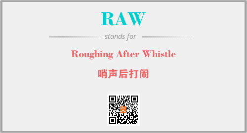 上述内容是“Roughing After Whistle”作为“RAW”的缩写,解释为“哨声后打闹”时的信息,以及英文缩略词RAW所代表的英文单词,其对应的中文拼音、详细解释以及在英文中的流行度和相关分类、应用领域及应用示例等。