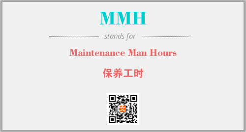 英文缩略词“MMH”经常作为“Maintenance Man Hours”的英文缩写来使用,中文表示:“保养工时”。本文将详细介绍英文缩写词MMH所代表英文单词,其对应的中文拼音、详细解释以及在英语中的流行度。此外,还有关于缩略词MMH的分类、应用领域及相关应用示例等。