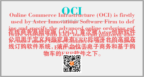 "OCI - 在线商务基础设施(OCI)首次被Aster创新软件公司用于定义和指定具有ERP后端平台的高级在线订购软件系统,该平台位于电子商务和基于购物车的ERP软件之下。 ." [引用日期]. <https://www.suoxie123.com/a/66DDA.html>.