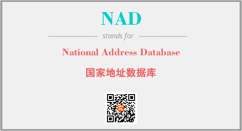 上述内容是“National Address Database”作为“NAD”的缩写,解释为“国家地址数据库”时的信息,以及英文缩略词NAD所代表的英文单词,其对应的中文拼音、详细解释以及在英文中的流行度和相关分类、应用领域及应用示例等。