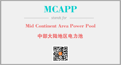 上述内容是“Mid Continent Area Power Pool”作为“MCAPP”的缩写,解释为“中部大陆地区电力池”时的信息,以及英文缩略词MCAPP所代表的英文单词,其对应的中文拼音、详细解释以及在英文中的流行度和相关分类、应用领域及应用示例等。