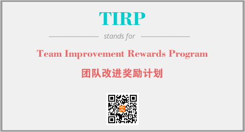 英文缩略词“TIRP”经常作为“Team Improvement Rewards Program”的英文缩写来使用,中文表示:“团队改进奖励计划”。本文将详细介绍英文缩写词TIRP所代表英文单词,其对应的中文拼音、详细解释以及在英语中的流行度。此外,还有关于缩略词TIRP的分类、应用领域及相关应用示例等。