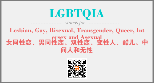 上述内容是“Lesbian, Gay, Bisexual, Transgender, Queer, Intersex and Asexual”作为“LGBTQIA”的缩写,解释为“女同性恋、男同性恋、双性恋、变性人、酷儿、中间人和无性”时的信息,以及英文缩略词LGBTQIA所代表的英文单词,其对应的中文拼音、详细解释以及在英文中的流行度和相关分类、应用领域及应用示例等。