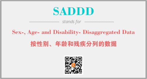 上述内容是“Sex-, Age- and Disability- Disaggregated Data”作为“SADDD”的缩写,解释为“按性别、年龄和残疾分列的数据”时的信息,以及英文缩略词SADDD所代表的英文单词,其对应的中文拼音、详细解释以及在英文中的流行度和相关分类、应用领域及应用示例等。