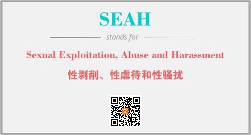 上述内容是“Sexual Exploitation, Abuse and Harassment”作为“SEAH”的缩写,解释为“性剥削、性虐待和性骚扰”时的信息,以及英文缩略词SEAH所代表的英文单词,其对应的中文拼音、详细解释以及在英文中的流行度和相关分类、应用领域及应用示例等。