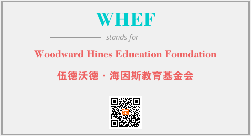 上述内容是“Woodward Hines Education Foundation”作为“WHEF”的缩写,解释为“伍德沃德·海因斯教育基金会”时的信息,以及英文缩略词WHEF所代表的英文单词,其对应的中文拼音、详细解释以及在英文中的流行度和相关分类、应用领域及应用示例等。