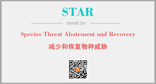 上述内容是“Species Threat Abatement and Recovery”作为“STAR”的缩写,解释为“减少和恢复物种威胁”时的信息,以及英文缩略词STAR所代表的英文单词,其对应的中文拼音、详细解释以及在英文中的流行度和相关分类、应用领域及应用示例等。