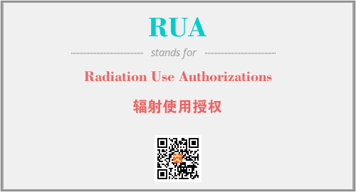 上述内容是“Radiation Use Authorizations”作为“RUA”的缩写,解释为“辐射使用授权”时的信息,以及英文缩略词RUA所代表的英文单词,其对应的中文拼音、详细解释以及在英文中的流行度和相关分类、应用领域及应用示例等。