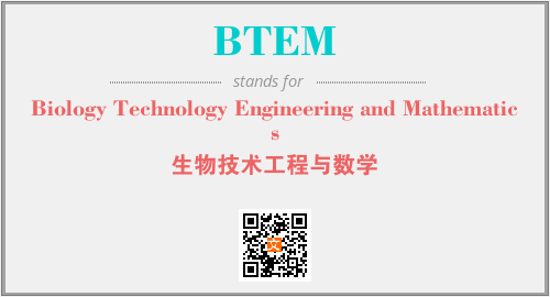 上述内容是“Biology Technology Engineering and Mathematics”作为“BTEM”的缩写,解释为“生物技术工程与数学”时的信息,以及英文缩略词BTEM所代表的英文单词,其对应的中文拼音、详细解释以及在英文中的流行度和相关分类、应用领域及应用示例等。