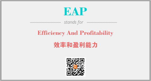 以上为Efficiency And Profitability英文缩略词EAP的中文解释,以及该英文缩写在英语的流行度、分类和应用领域方面的信息。