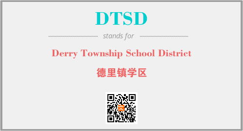 上述内容是“Derry Township School District”作为“DTSD”的缩写,解释为“德里镇学区”时的信息,以及英文缩略词DTSD所代表的英文单词,其对应的中文拼音、详细解释以及在英文中的流行度和相关分类、应用领域及应用示例等。