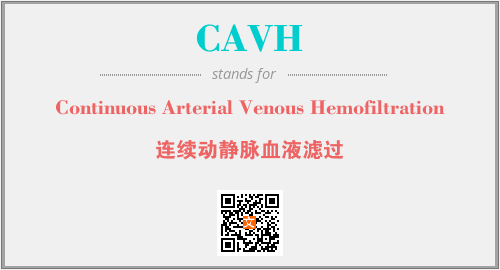 英文缩略词“CAVH”经常作为“Continuous Arterial Venous Hemofiltration”的英文缩写来使用,中文表示:“连续动静脉血液滤过”。本文将详细介绍英文缩写词CAVH所代表英文单词,其对应的中文拼音、详细解释以及在英语中的流行度。此外,还有关于缩略词CAVH的分类、应用领域及相关应用示例等。