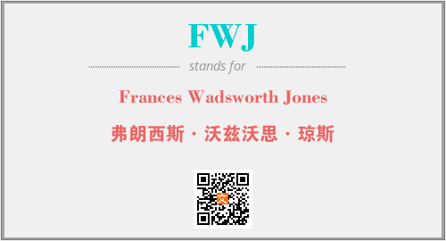 上述内容是“Frances Wadsworth Jones”作为“FWJ”的缩写,解释为“弗朗西斯·沃兹沃思·琼斯”时的信息,以及英文缩略词FWJ所代表的英文单词,其对应的中文拼音、详细解释以及在英文中的流行度和相关分类、应用领域及应用示例等。