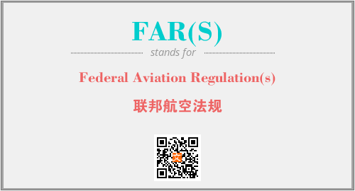 英文缩略词“FAR(S)”经常作为“Federal Aviation Regulation(s)”的英文缩写来使用,中文表示:“联邦航空法规”。本文将详细介绍英文缩写词FAR(S)所代表英文单词,其对应的中文拼音、详细解释以及在英语中的流行度。此外,还有关于缩略词FAR(S)的分类、应用领域及相关应用示例等。