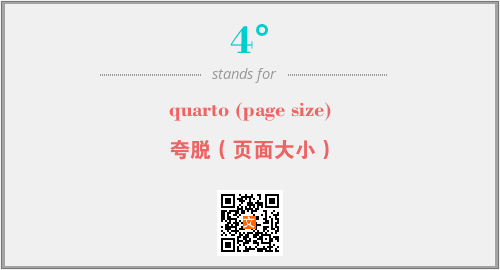 上述内容是“quarto (page size)”作为“4°”的缩写,解释为“夸脱(页面大小)”时的信息,以及英文缩略词4°所代表的英文单词,其对应的中文拼音、详细解释以及在英文中的流行度和相关分类、应用领域及应用示例等。