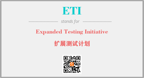 英文缩略词“ETI”经常作为“Expanded Testing Initiative”的英文缩写来使用,中文表示:“扩展测试计划”。本文将详细介绍英文缩写词ETI所代表英文单词,其对应的中文拼音、详细解释以及在英语中的流行度。此外,还有关于缩略词ETI的分类、应用领域及相关应用示例等。